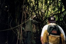 The second guide was supposed to find the whereabouts of the gorillas' last campsite and then lead us to this spot so that they could track the gorillas who would move around all day. The guide didn't show so we walked into the jungle anyway. This was my first experience of proper "jungle" and it was so dense that sunlight struggled to make an impression. The guide carried a machete and used it to good effect hacking his way through branches and vines that contrived to block our path. I decided that the jungle was totally inhospitable to man and that I wouldn't last five minutes if I was lost in it on my own.